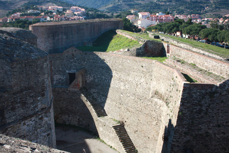 Да, в первую очередь это крепость, а уж затем - резиденция королей, предназначенная для комфортной жизни и увеселений. Зубцы на сохранившихся со времен Средневековья башнях, бастионы, выстроенные по всем канонам фортификационной науки - эти элементы, появившиеся в разное время, так или иначе свидетельствуют о том, что обороне здесь всегда придавалось первостепенное значение, что не должно удивлять: Коллиур, расположенный в приграничной зоне, размещался в средоточии постоянных военных конфликтов.
